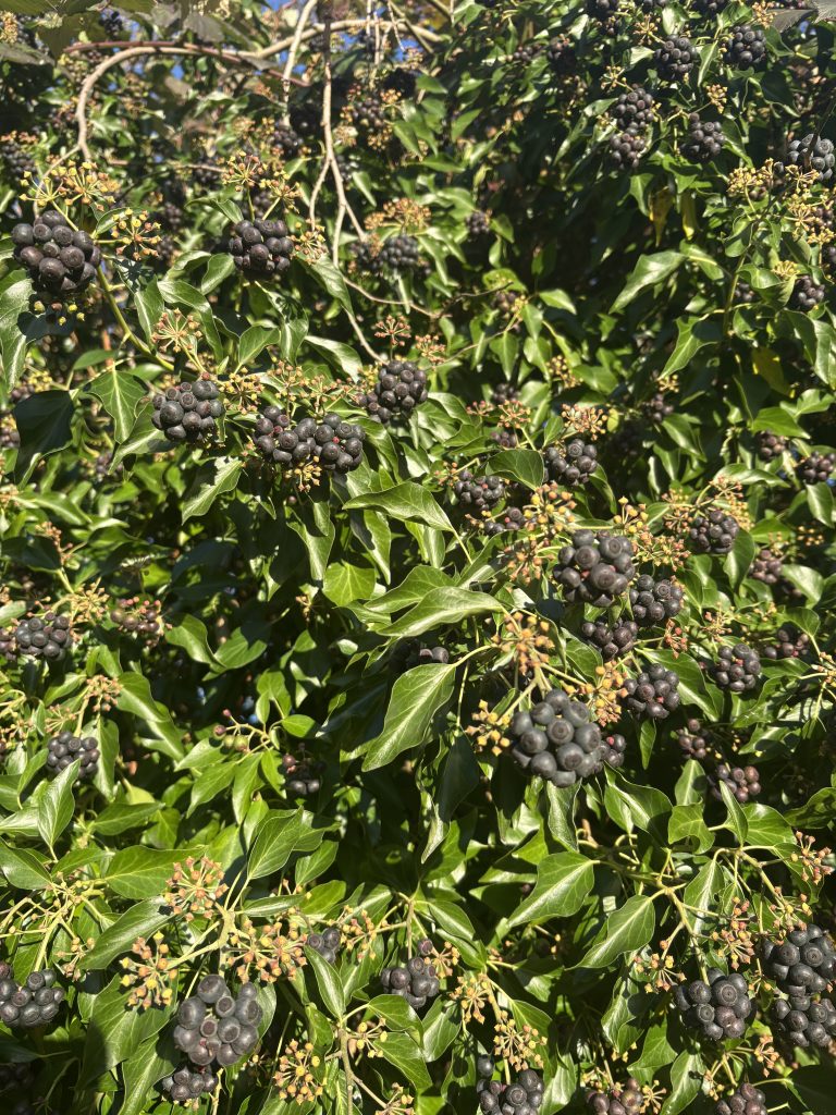 The many berries on the more tree-like ivy were evidence of how it had recently played a role as a rich nectar source for bees. Honey made from ivy flowers is sometimes called ‘winter honey’ and is noticeably thicker. Some find the herby medicinal flavour overpowering but it is treasured as a treatment for coughs and potential antibacterial qualities. Think of it as our version of Manuka honey.