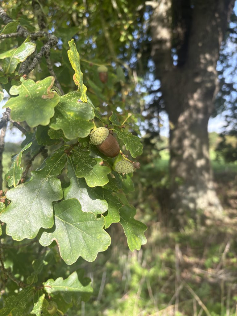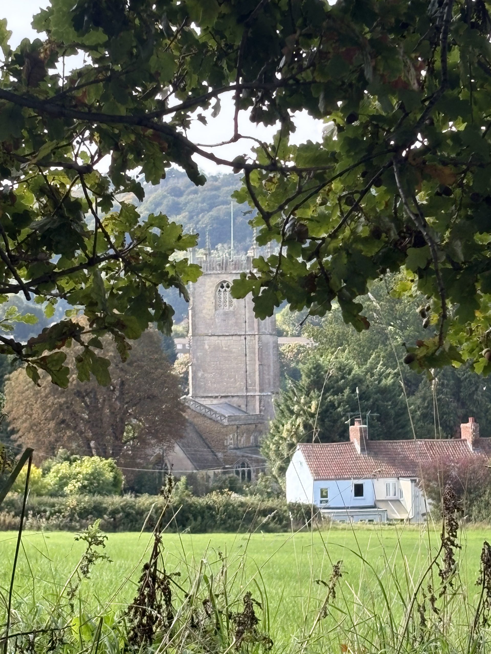 Although not in the churchyard itself, a massive oak makes its presence known through a scattering of acorns. Huge cups and seeds are plentiful at our feet. This autumn is considered a ‘mast year’, when many of our fruit and seed bearing trees have over-produced. This may be an indication of a harsh winter to come, nature is providing in readiness; or it may be showing us the stress these trees are under, they’re putting all they can into reproduction because they fear their time may be short.