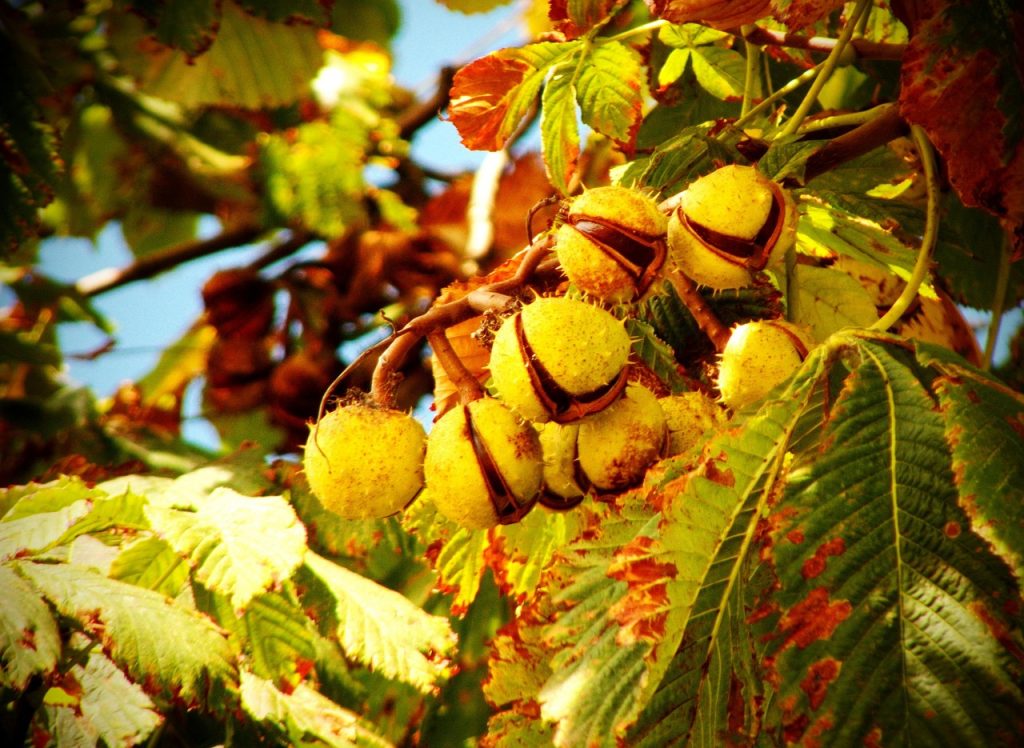 Which brings us round to the grand horse chestnut that stands at the back of the churchyard, the lesser-visited spot. Her branches reach out over Hopton Road, so you may have found some of her conkers on the ground there, shining brightly. Gather these and treasure them. Although many generations have happy stories of conker fights – whether fairly won or otherwise – and traditionally folk have benefitted from the abundant saponins in conkers which make a great liquid soap when chopped and boiled, these will sadly become things of the past. Our horse chestnuts have come under attack from an invader, the miner moth. It’s a subtle thing, receiving much less attention than ash die back but is actually more worrisome in that it will affect absolutely every horse chestnut. The moth causes the leaves to brown meaning they cannot photosynthesise, gradually weakening the tree. Enjoy your conkers and the sight of magnificent horse chestnut trees while you can.